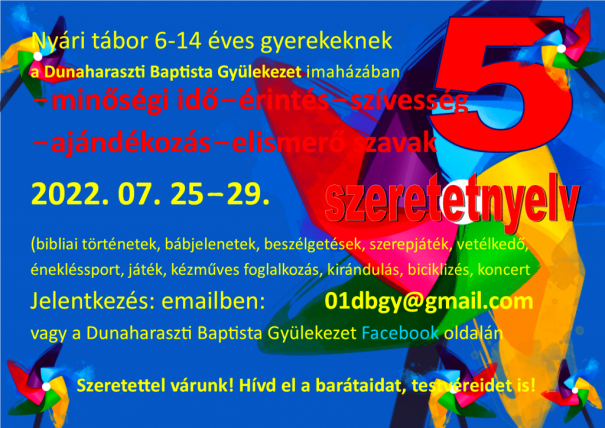 - Július 10-én, szerdán 18.00 órakor Bibliaórát tartunk - szeretettel várjuk az érdeklődőket személyesen az imaházban vagy ZOOM-on.